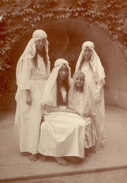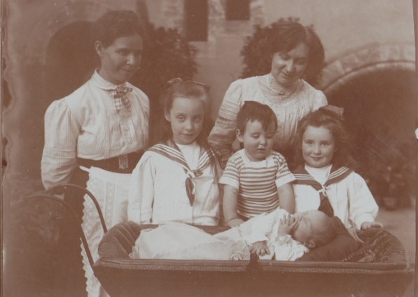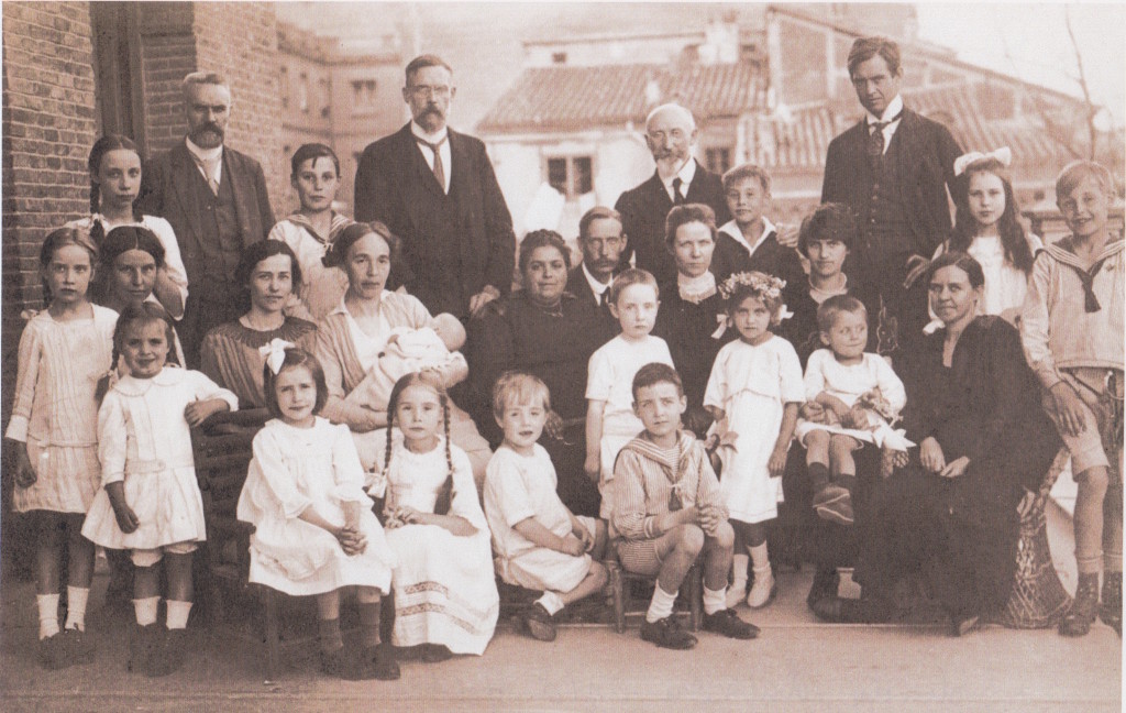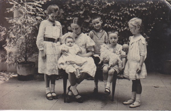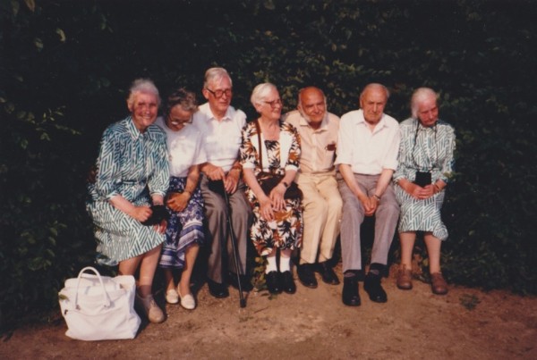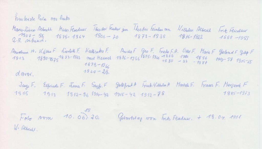 Zum Familienfoto vom 10. Juni 1920 (dem 75. Geburtstag von Hildegunds damals schon verstorbenen Großvater Fritz Fliedner) fand ich einen Notizzettel, auf dem Hildegund genauere Angaben zu den einzelnen Personen hinterlassen hat, inklusive Sterbejahr. Die spätest Verstorbene darauf ist 1998 ihre Schwester Maria-Luise. Höchstwahrscheinlich handelt es sich bei dem Foto um eine Selbstauslöseraufnahme. Fotograf: Vater Wilhelm Möller