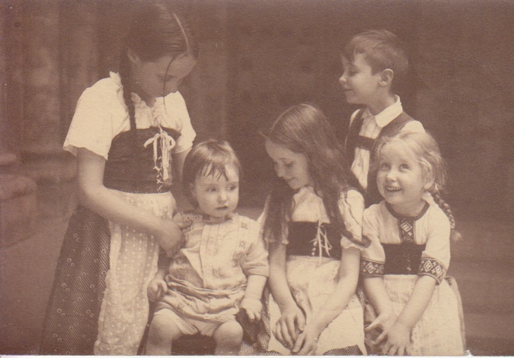 In Vaters Tagebuch, das er sehr gewissenhaft führte, stand am 4.3.07: „Schlimme Nacht und schöner Morgen“. Bei Friedrich Wilhelm, der am Tag geboren wurde, ließen Mutters Wehen nach. Sie stand auf und zog uns an. Als sie uns kämmte, sangen wir plötzlich: ”ihr Kinderlein kommet”. Da mussten die Eltern sehr lachen, und da dauerte es garnicht mehr lange, und Vater zeigte uns, woran man einen Jungen erkennen kann. Bei Anneliese merkte ich, das es im Gange war. Dann machte uns Vater wach und zeigte uns ein Wunder. Sie hatte ein liebes Köpfchen mit krausem, hellblonden Härchen, hübscher als alle Kinderbilder im Prado. Gottfried kam auch in der Nacht. Da weckte ich Maria- Luise, weil ich es allein nicht vor Freude aushielt. Gretel hatte einen mächtigen dunklen Schopf. Wir durften sie schon sehen, als sie gebadet wurde. Hans Heinrich kam am Abend. Mutter kam zu mir und bat mich, den ”Kindern” das Abendbrot zu geben und sie ins Bett zu bringen. Mutter sah furchtbar elend aus. Dann kam auch noch ein tolles Gewitter und noch ehe die Hebamme kam, war er schon da und Vater zeigte ihn uns noch ungewaschen, aber sehr niedlich.