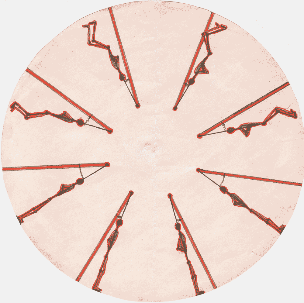 - Ich erinnere mich daran, dass ich dabei war, als Opa das defekte und Jahrzehnte lang ungenutzte Gerät bei dem Umzug ins Altersheim aus dem Keller holte und zum Sperrmüll trug. Ich stellte viele Fragen und verstand dennoch nicht ganz, was das eigentlich war. Opa zeigte mir dann eine Pappscheibe* mit Sehschlitzen. Neben jedem Schlitz war eine kleine Abbildung von einer Animation wie eine Person den „GEH-FIX“ benutzt. Wenn man die Scheibe drehte und durch die Schlitze in den Spiegel sah, dann konnte man die Animation laufen sehen. Bei jedem Besuch bei Opa und Oma im Altersheim holte ich die Scheibe aus dem Schrank und verbrachte viel Zeit vor dem Spiegel. Wo diese Scheibe abgeblieben ist, weiß ich leider nicht.“