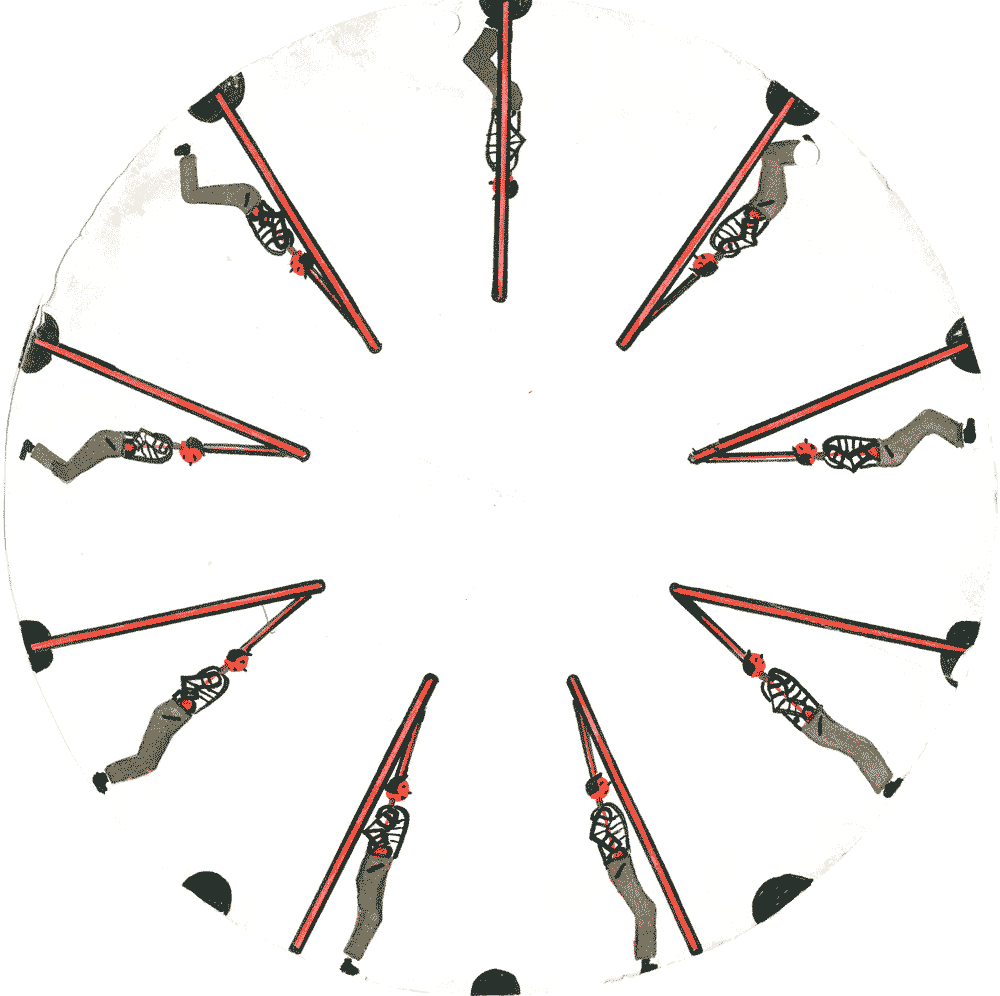 - Opa hatte die Idee zu diesem Gerät, als er einmal eine Beinverletzung hatte und feststellte, dass er mit Krücken schneller war als ohne, weil das Schrittgelenk von der Hüfte zu den Schultern wanderte und die Schrittlänge damit größer wurde. Mit dieser „Schaukel zum Mitnehmen“ liegt das Schrittgelenk sogar über dem Kopf und ermöglicht enorme Schrittlängen (siehe Abb. 3 bis 5 und 12 bei den zusätzlichen Abbildungen).